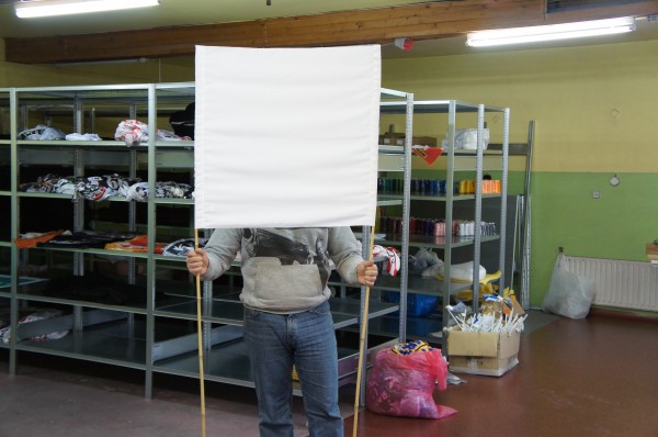 Plain banderi flag made of strong fabric, ready to be painted. Fire retardant B1