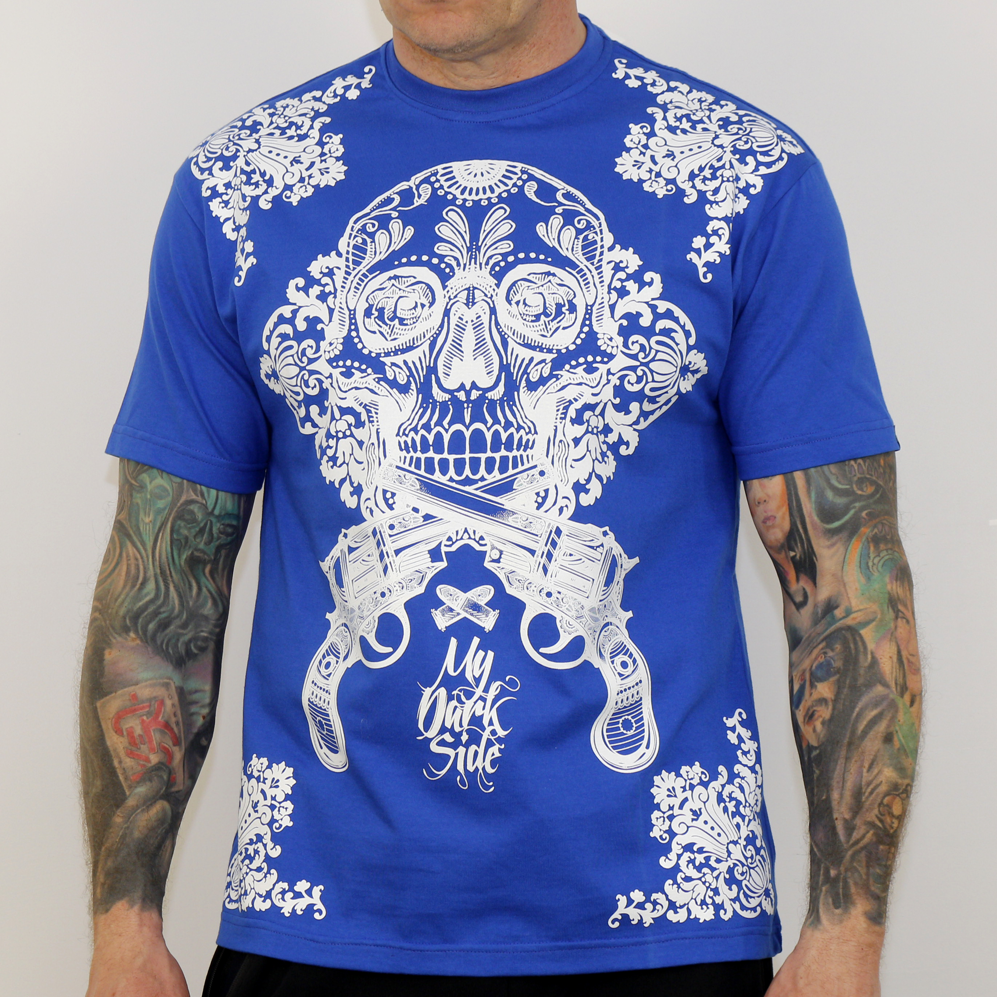 HOME >> My Dark Side clothes >> MDS tshirts >> MDS003 skull tshirt blue-white