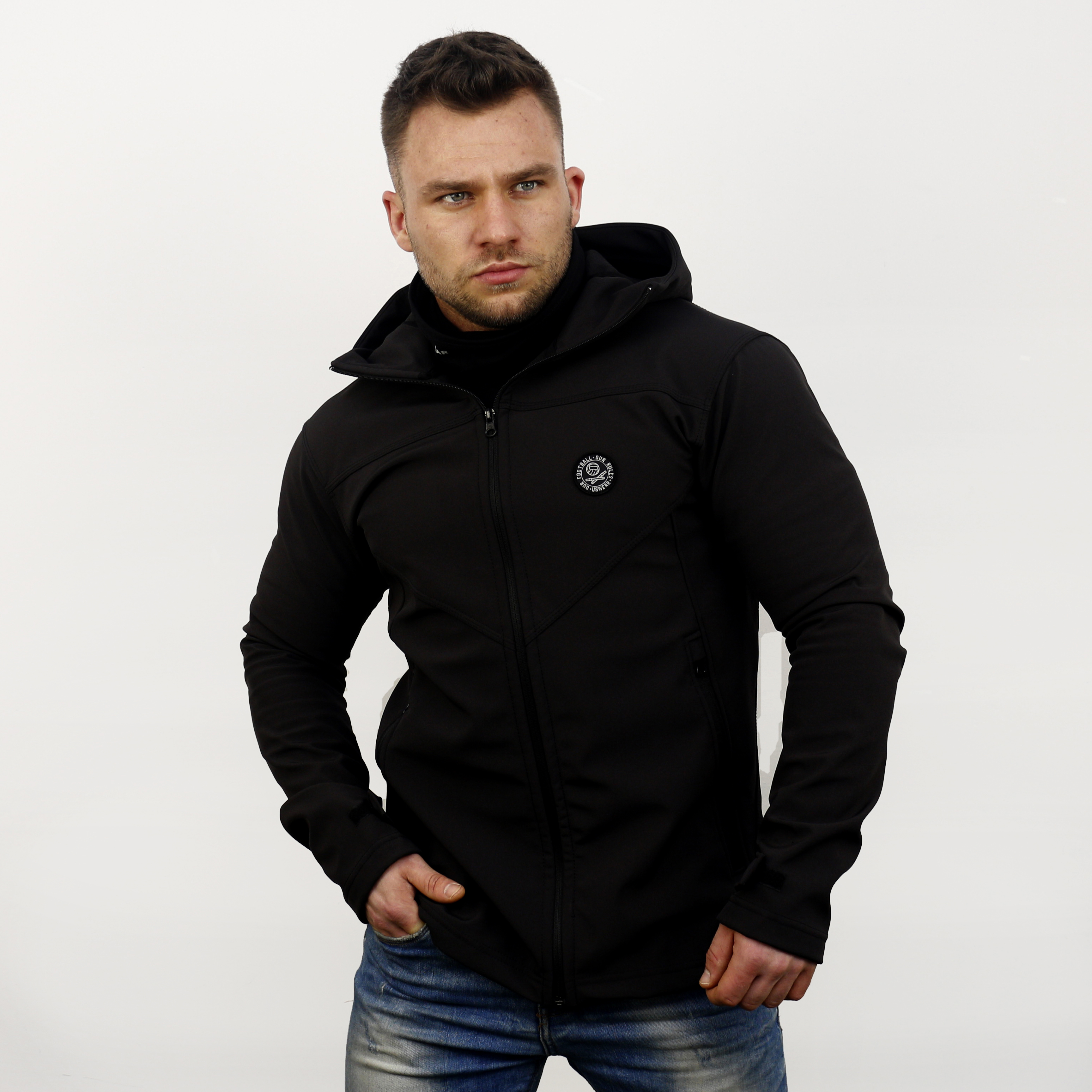 Our softshell jacket has a good fit, the cut ensures maximum comfort thanks to flat seams located in specially selected places. It has a sewn-in bandana that can be easily removed and hidden, two very deep pockets that do not interfere with the use of the jacket and velcro at the end of the sleeves for a more precise fit.