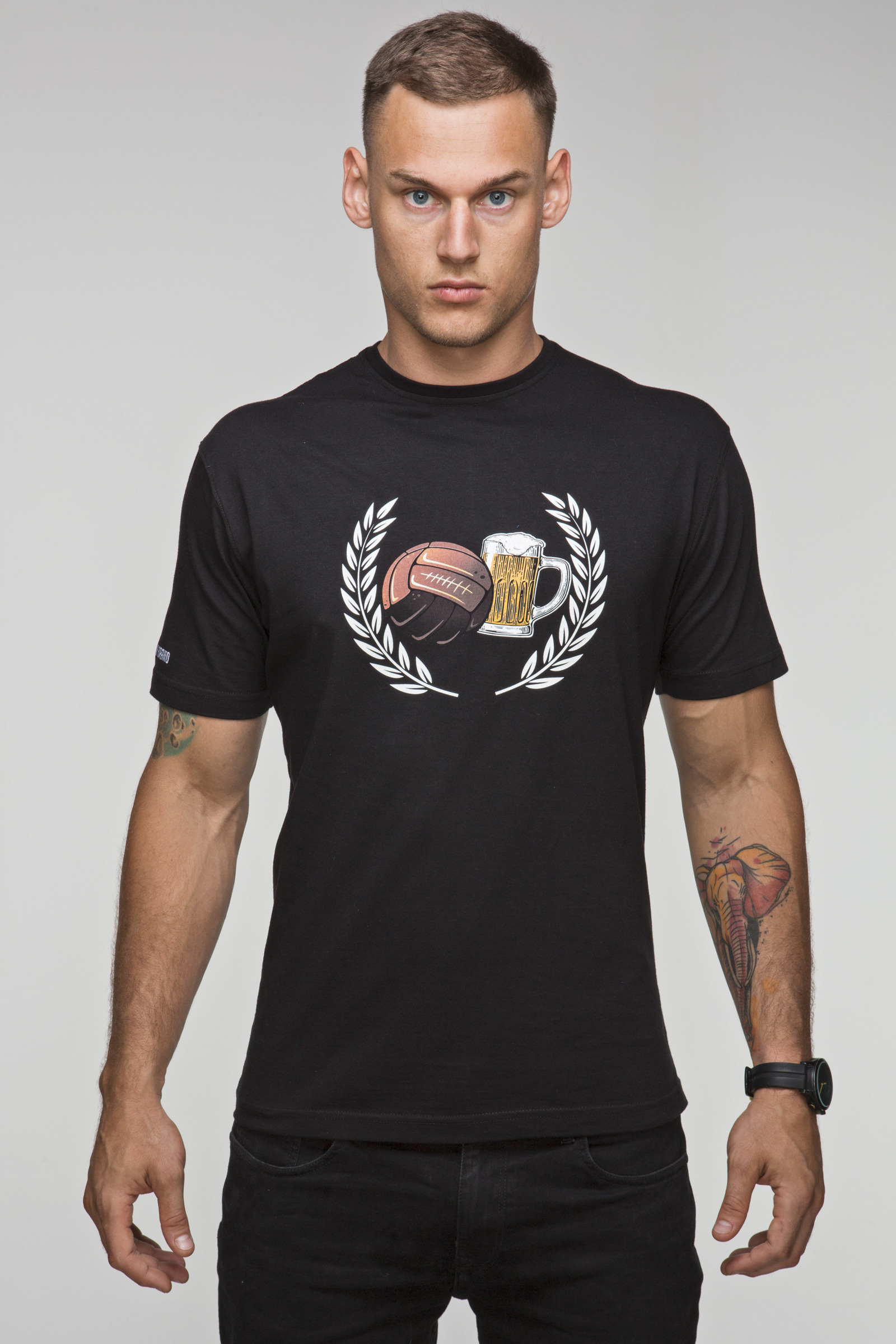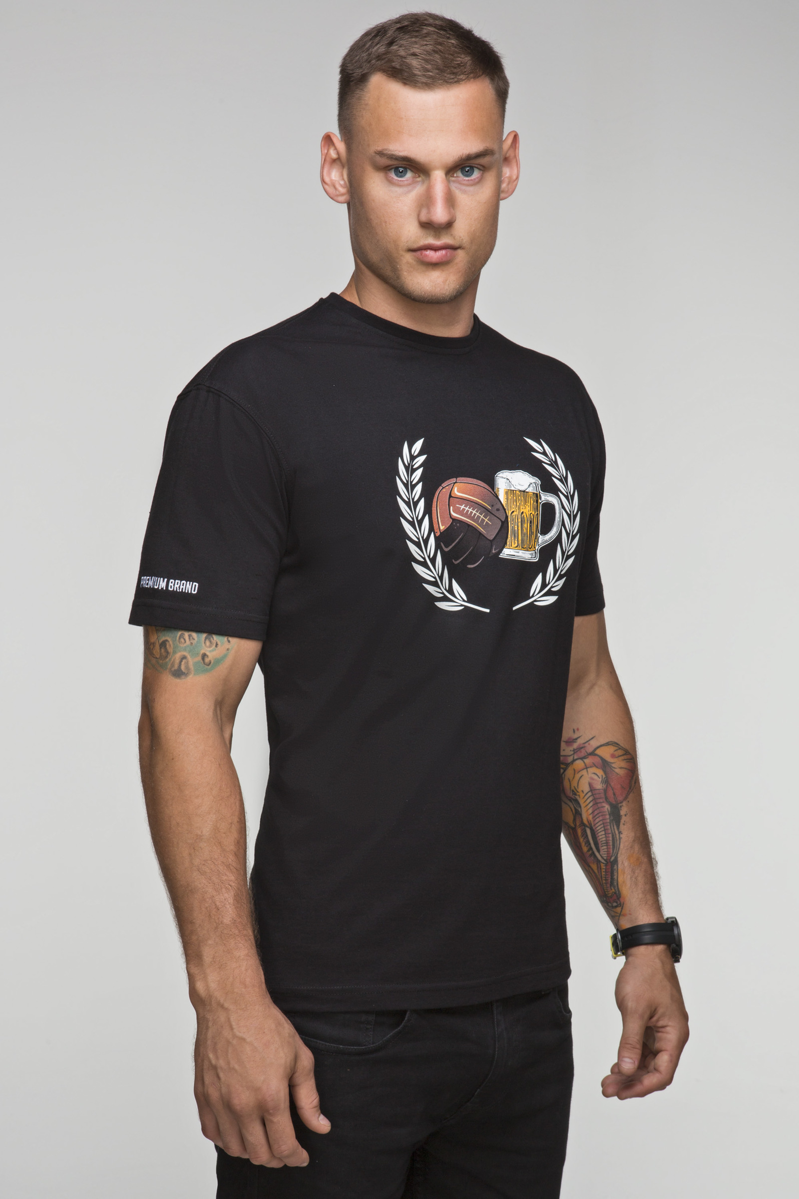 HOME >> USWEAR products >> USW007 Beer and Football BLACK T-SHIRT DTG
