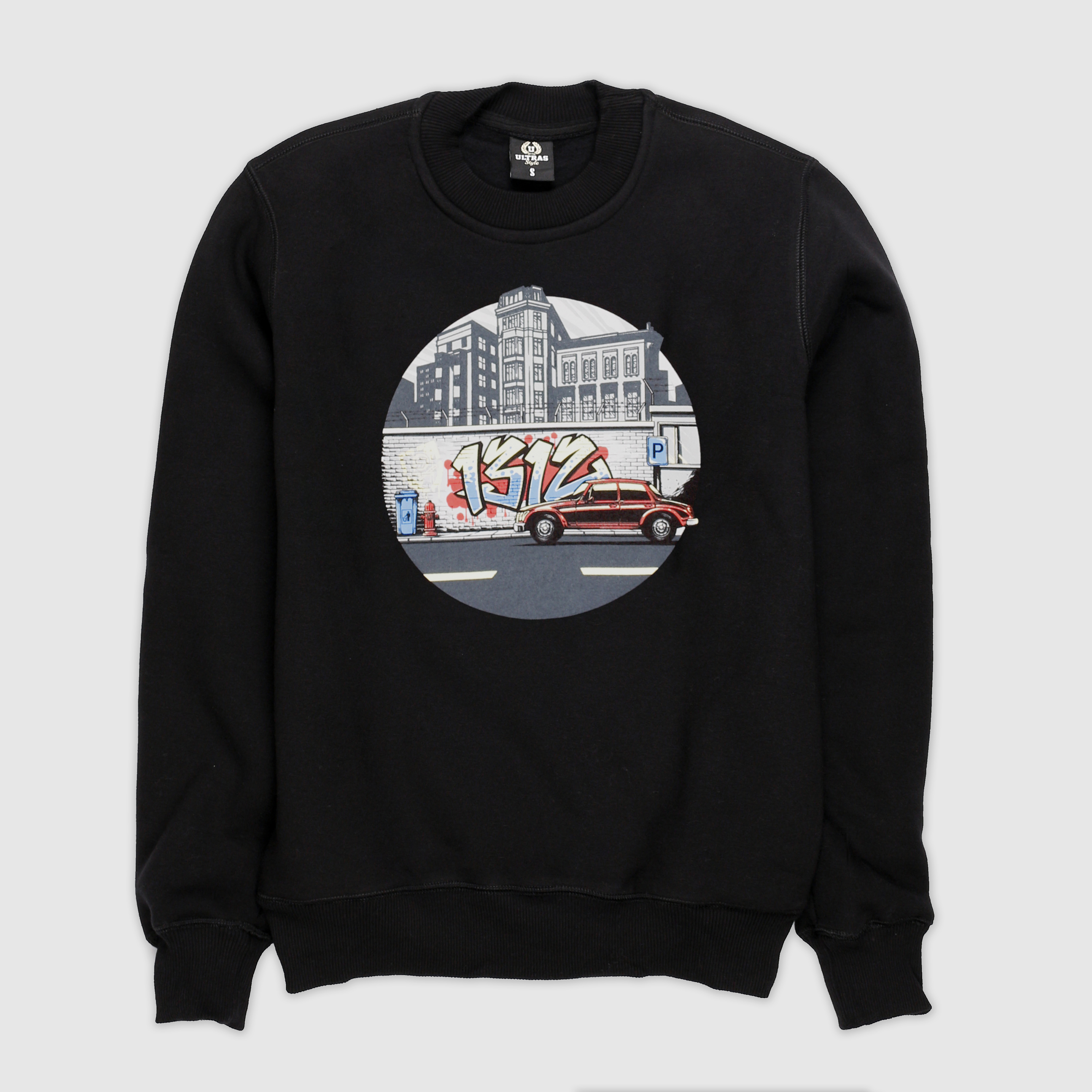 Streets after dark sweatshirt in black color in USW Ultras style. Thick cotton with the addition of polyester prevents the sweatshirt from stretching in the wash and keeps its shape for years.