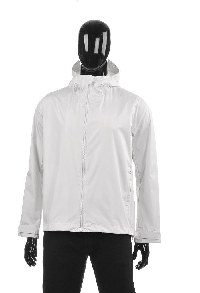 100% polyester made from scratch. Rainproof, windproof jacket with a polyester lining that can be replaced with fleece to get winter version. This costs +8€ per piece.