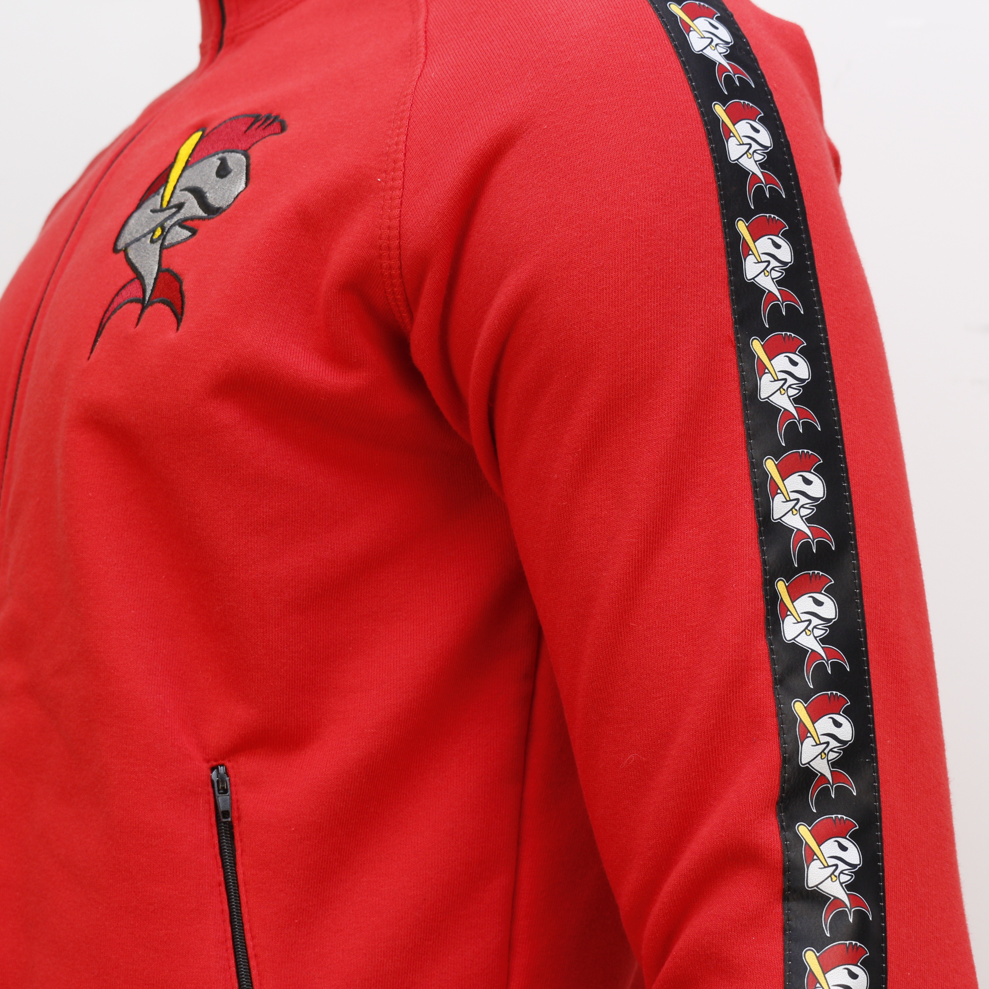This tracktops are made of thinner than most of our sweats, convenient to use cotton material. You can color each element in a different color and add your graphics to DTG or screen printing, and even embroidery. Sleeve stripes and ribbons are optional. You can have 1,2 or 3 stripes on each sleeve. If you want 4 of them there is no problem, contact us. Basis weight of fabric is 280g/m2.k